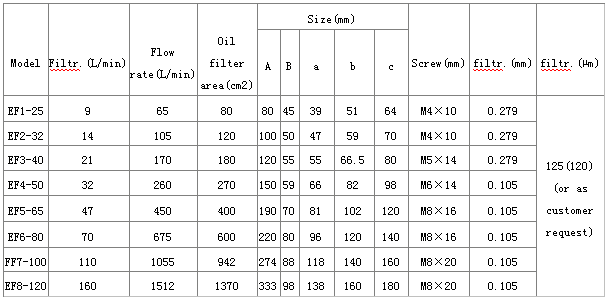 This kind of series has 8 models.It includes oil filtering and air filtering .EF series filter incorporated with oil filling is widely used in the tank of hydraulic system .