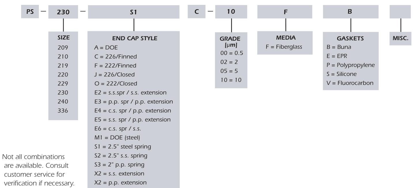 single open end, 222 o-rings, 226 o-ring with locking ears, fins, and core extenders. When you need micro-filtration