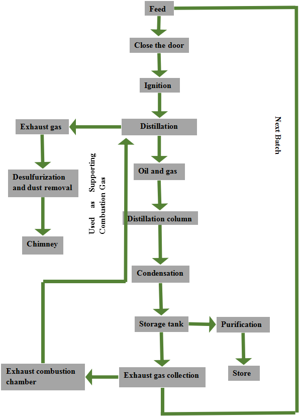 The process of this equipment is briefly described: the waste oil is added to the tubular heating furnace, heated by distillation process, distilled oil vapor, and then the oil vapor is passed through the condenser to fractionate the basic fuel oil. After sedimentation and filtration treatment,the decolorizing agent is added, and the fuel oil is qualified as a qualified fuel oil.