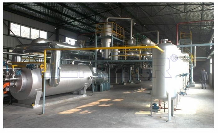 The process of this equipment is briefly described: the waste oil is added to the tubular heating furnace, heated by distillation process, distilled oil vapor, and then the oil vapor is passed through the condenser to fractionate the basic fuel oil. After sedimentation and filtration treatment,the decolorizing agent is added, and the fuel oil is qualified as a qualified fuel oil.